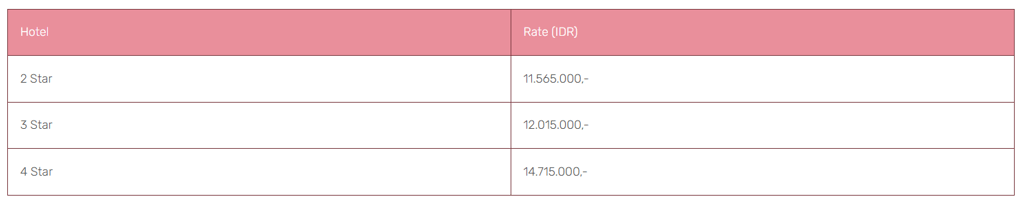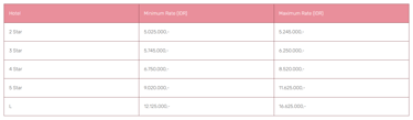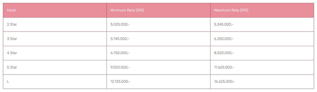 Rate yang ditawarkan untuk hotel karantina adalah sebagai berikut: